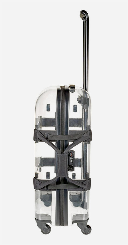 zanimljivosti Transparent Suitcase Rolling suitcase made out of transparent polycarbonate will help you quickly go through airport security.Transparent suitcase for people who have nothing to hide designed by Australian luggage company Crumpler. Source